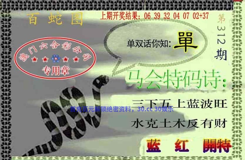 | 高手开路,发财无数!猛料尽在百蛇图坛网! |