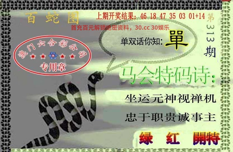 | 313期:平特一肖🍒【蛇蛇蛇】 開:蛇49准 |